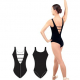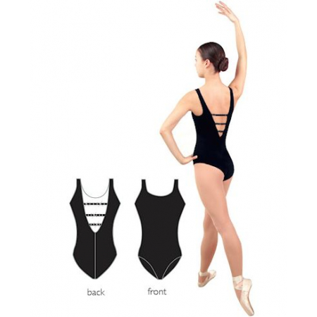 Danshuz 206A BLK Rhinestone Back Tank Bodysuit •Tank leotard with rhinestone studded ladder back •Shelf bra lined •Cotton blend