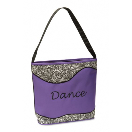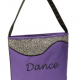 Microfiber fabric with textured silver sparkle treatment Embroidered "Dance" Interior zipper pocket Fully lined
