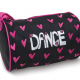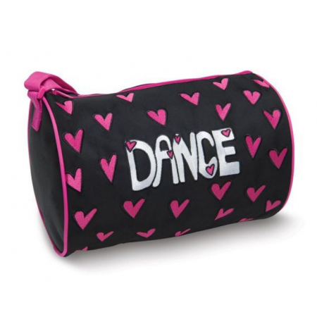 B965 – HEARTS FOR DANCE DUFFEL Features: Microfiber fabric made with colorful fully embroidered design, adjustable shoulder strap, side zipper pocket, fully lined. 12” x 8”
