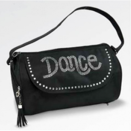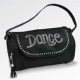 Our most popular size roll duffle. A hidden outside pocket under front flap keeps your personal belongings hidden. Sequin "Dance" and individual rhinestones highlight this bags exterior. Made with fabric that is durable and easy to wipe clean. Includes zipper pom-pom and water repellant inner lining. Light weight and folds flat.