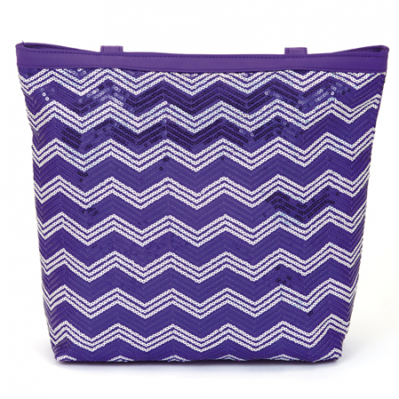 Sequins overlays the exciting chevron pattern giving this tote lots of sparkle and shine.