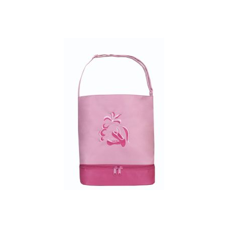 Brilliantly embroidered Pointe Shoes on a pink tote bag. Separate bottom shoe compartment. Microfiber material wipes clean with a damp cloth. Can be personalized.