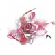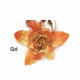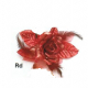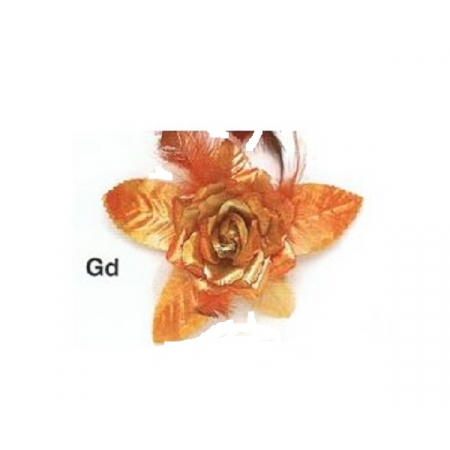Eye catching flower with a feather accent shines in the light. Great on stage or off. These showy metallic fabric flowers are approximately 6" across.