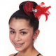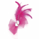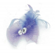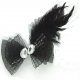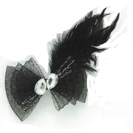 6-way mesh bow with silver, glittery streaks along the edges. Centered with 2 large stones and matching feather extending out the top. Mounted on an alligator clip.