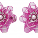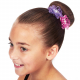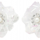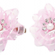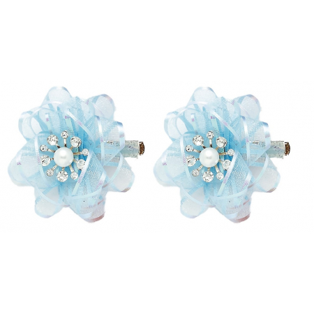 Made with nylon mesh ribbon loops each with shimmering iridescent trim is attached to an alligator clip. The center pearl is surrounded by 10 round crystal alternating large and small sizes.