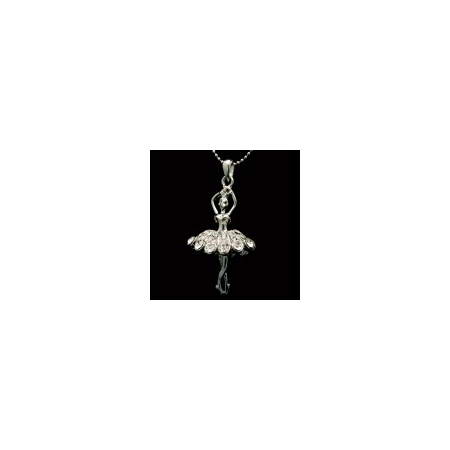 Necklace with ballerina pendant in clear rhinestones and move-able leg