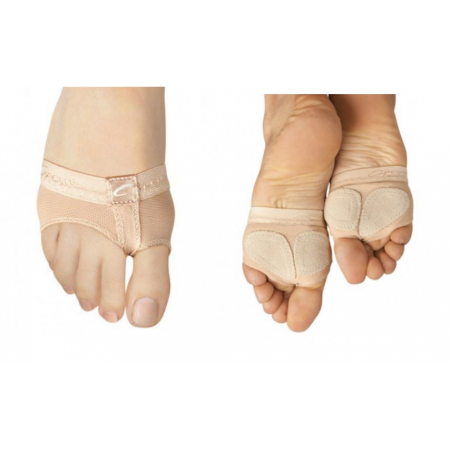 footUndeez™ create the illusion of dancing barefoot. Its four way stretch spandex material is both breathable and stable thanks to the sewn in fore foot pads. The one-sided, Capezio logo elastic holds footUndeez™ in place during every pirouette. Recommended for lyrical and modern classes.