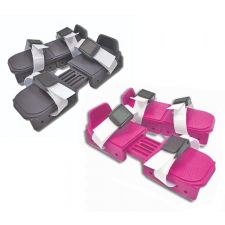 Double-runner, adjustable plastic bob skates with steel blades for beginners. Ages 2-5.
