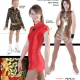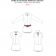 Dress with or without sleeves (cap or long sleeves), invisible zipper at center front, choice of mandarin or shirt collar, A-line skirt with rounded slits at side seam and attached panties.