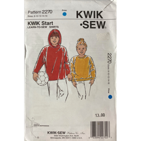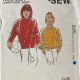 Boys' and girls' loose fitting pull-over shirt has extended shoulders and long sleeves. Shirt can be made with neckband, waistband and cuffs or with hood and hemmed bottom edge and sleeves. Shirts are very easy to sew and have special easy-to-follow sewing instructions.