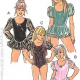 The girls' leotards are designed with sheer short or long puff sleeves and have a scoop neckline. The neckline and leg openings are finished with elastic. View A and B have an attached double layer sheer circular skirt. View C has a separate sheer pull-on skirt.