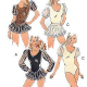 The leotards are designed for two-way stretch fabric with 75% stretch. We suggest fabric with spandex or Lycra, cotton Lycra or swimsuit fabric. For the contrast fabric we suggest sheer fabrics, chiffon, georgette or viole.