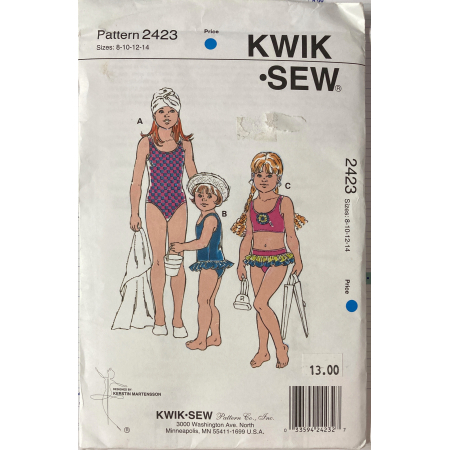 These one and two piece suits are designed for two-way stretch fabric with 75% stretch on the lengthwise grain. Use swimsuit fabric with spandex or Lycra®.
