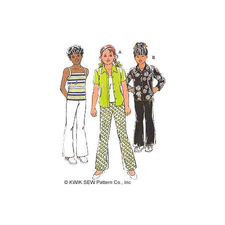 The blouse & camisole are designed for stretch knits only with 25% stretch across the grain. We suggest interlock, stretch velour, stretch velvet, textured knits and stretch lace. The blouse is semi-fitted with a collar and stand in one piece. It has a front tab on the right front and a shirt-tail hemline. View A has short sleeves and View B has long sleeves. The camisole neckline and armholes are finished with self fabric binding. The shoulder straps and armhole bindings are in one piece.
