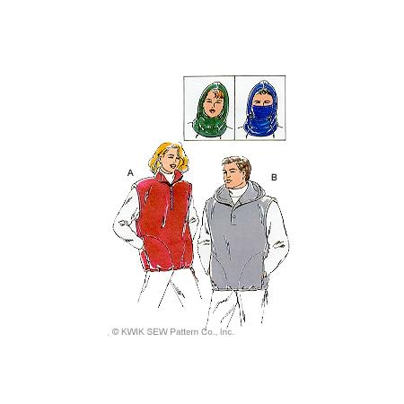 The vests and the hood (balaclava) are designed for heavyweight stretch knits such as Polarfleece®, sweatshirt fleece or blanket fleece. For the contrast fabric in View B, use a light to medium weight fabric such as flannel, cotton or cotton types.