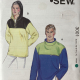 The Unisex pull-over shirts have extended shoulders and contrast front and back yokes. View A has a zipper pocket in the front yoke seam. View B has a lined hood and a zipper on the hood and front yoke.