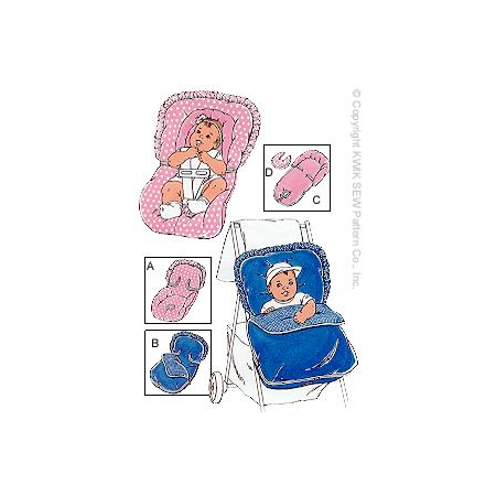 The Car Seat Cover is padded with polyester batting. It has a ruffle and the outside edges are finished with bias tape.