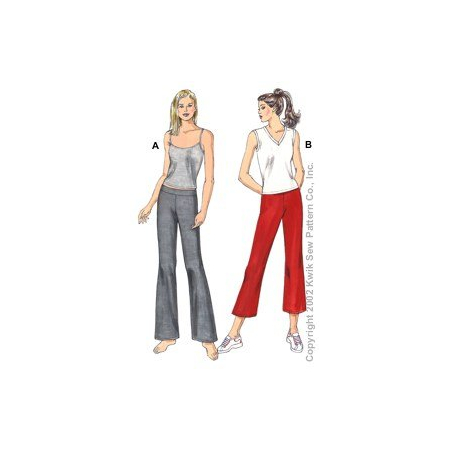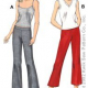 Misses' pants and tops. The very close fitting pull-on pants have flared legs in two lengths and a wide waistband with narrow elastic. The View A camisole has a shelf bra lining and elastic at the top edge and shoulder straps. The View B top has a V-neckline and armholes finished with self fabric bindings.