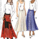 The Misses' pull-on skirts have a waistband with a drawstring that ties in the front. The View A "patchwork" skirt with gussets is made from five different fabrics. View B and C flared, gored skirt has ten panels. View B is made from five different fabrics. View C is made from two different fabrics.