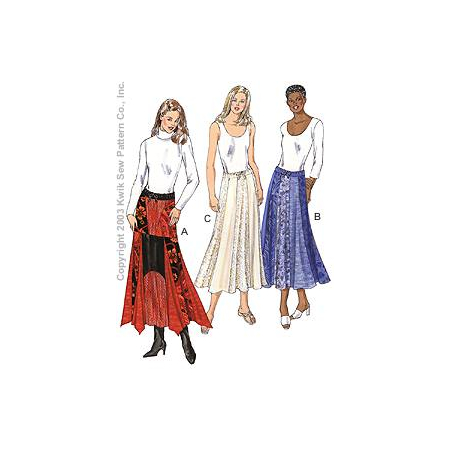 The Misses' Skirts are designed for lightweight woven and firm knit fabrics. We suggest challis, crepe, satin, cotton, silk, rayon, single knit, jersey.