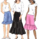 Misses' skirts. Pull-on skirts have elastic in casing at waist. View A has two gathered ruffles. View B and C have one gathered ruffle.