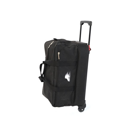 Rolling duffle style skate bag with extendible handle, zippered bottom compartment for skates and a roomy zippered top section for all types of gear. Adjustable shoulder strap.