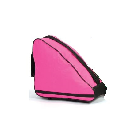 Triangle shaped skate bags with zippered back pocket, reinforced rigid bottom to protect against sharp skate blades and toe picks, and an adjustable shoulder strap. Colors: