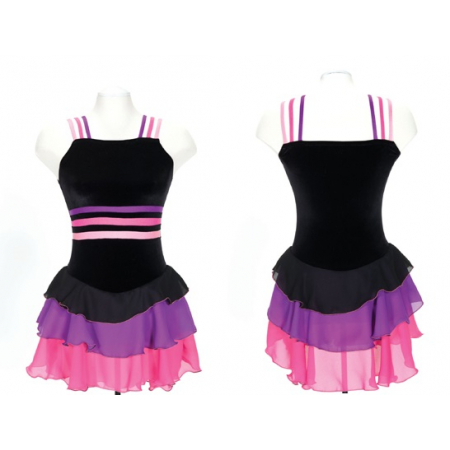 Black dresses with contrasting triple georgette skirts and a trio of accent stripes.