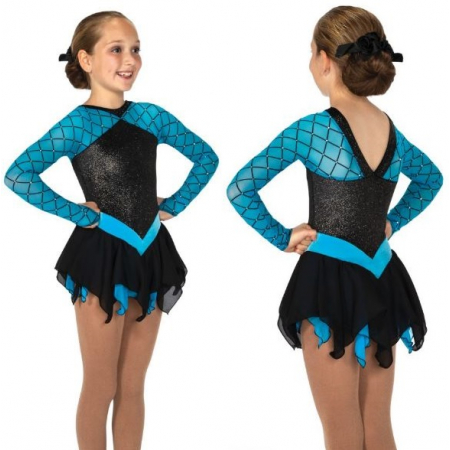 Eye catching diamond mesh in vivid, confident colours is complemented by a V-shaped waistline and a double handkerchief skirt. Twinkle velvet in the body adds extra shimmer and finger points give the long sleeves a pointed look that mirrors the diamond theme of the style.