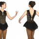 Tastefully detailed black velvet dress with intricate swirls of gold glitter, a filmy double layer skirt edged in gold and a bit of gently gathered mesh along the V-neckline and dipped back.