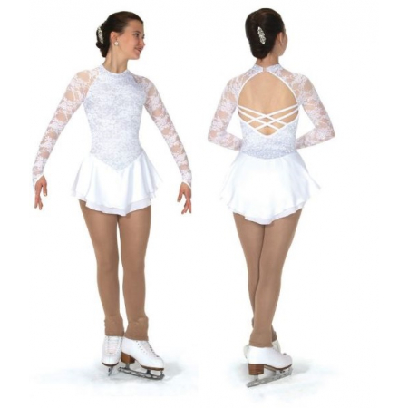 Sophisticated glitter lace dresses with long sleeves and finger points, a high neck, matching double georgette skirt and a back marquis keyhole with criss cross spaghetti straps. Lined.
