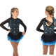 Intricate scrolls of silver and sapphire glitter intertwine against a black velvet background in this sophisticated, colour savvy design. A trio of slanted spaghetti straps adorn the scoop back and silver edging enhances the triple layer georgette skirt.