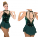 217 Emerald Etiquette Dress Gorgeous emerald green embossed velvet dress with a scattering of gold crystals, a high neck and trim in gold glitter and a back keyhole outlined in velvet. Filmy double layer skirt edged in gold.