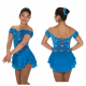 The deep capri blue colour of this dress is an enchanting backdrop for the intricate silver glitter pattern and the silver edging on the double georgette skirt. Cut out tulip sleeves with lace-up looking cross details and off-the shoulder styling complete the confection.