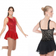 Velvet dresses with scrolling glitter, shaped mesh front and wide shoulder straps. Double layer skirt.