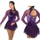 251 Resplendant Dress Deep Purple velvet dress with a high neck and glitter trim framing a sweetheart shaped front and marquis keyhole back. Long mesh sleeves with finger points and a double layer georgette skirt.