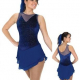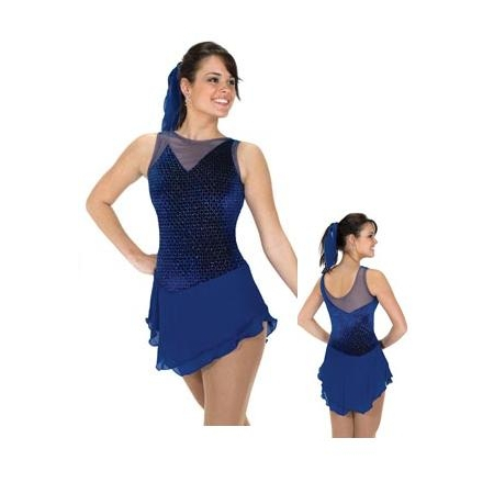 Deep royal blue glitter velvet dress with asymmetrical styling and a double layer georgette slant style skirt. Mesh is lined in beige.