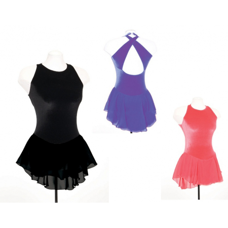 Solid velvet dress with crossed and tapered back straps and a matching georgette skirt.