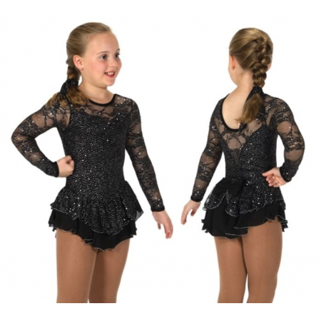 Classic style dress in glitter lace with sweetheart shaped lining, a scoop neck and double skirt of lace over georgette accented with a detachable back bow.