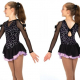 Classy little black velvet bows provide sophisticated touches to the infinity keyhole cut-outs in the long mesh sleeves and at the matching locket style back keyhole. The black velvet body is swirled with silver and soft purple glitter and the skirt is a double layer of black georgette over soft purple.
