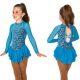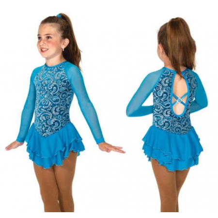 Swirling silver glitter velvet set against richly coloured velvet is set off by long mesh sleeves, an elegant back keyhole with crossed back straps and a crystal ring accent. The skirt is a double layer of matching georgette.