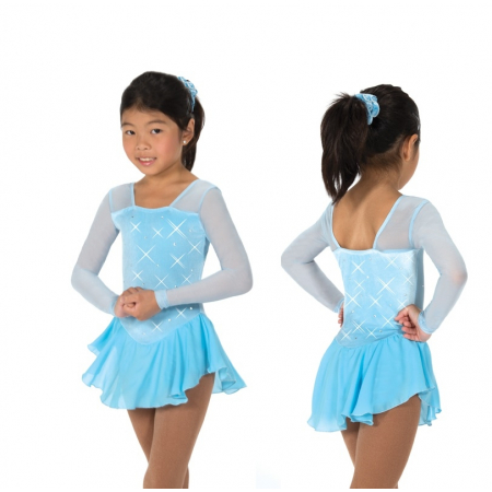 12 Rhinestone Dress - Crystal Blue A classic Jerry’s style velvet dress with long mesh sleeves, a square neckline, georgette skirt and a scattering of sparkling crystals front and back. Size 10-12