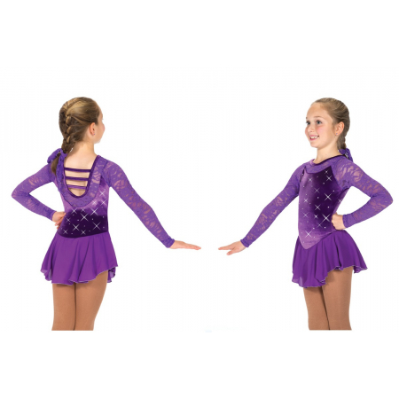 Vibrant velvet dresses with long lace sleeves, lace trim around the scoop neck, triple back straps, a matching georgette skirt and a scattering of crystals front and back. Also available in Fuchsia and Sky Blue