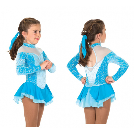 Soft shades of sky blue and crystal blue are frosted over with dainty swirls of icy silver that add sparkle to this classic style. Shaped mesh at the shoulders and a double layer skirt enhance the look.