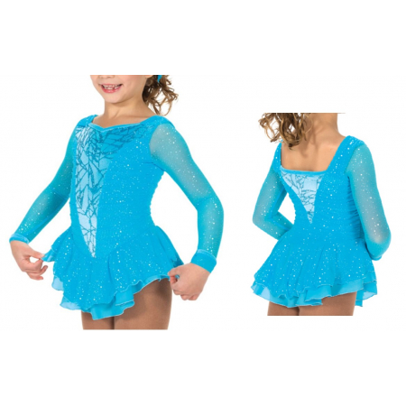 Sparkling glitter mesh is softy gathered along the shoulders and princess seams of these pretty dresses. Long glitter mesh sleeves double layer skirt of glitter mesh over georgette and a glitter velvet body.