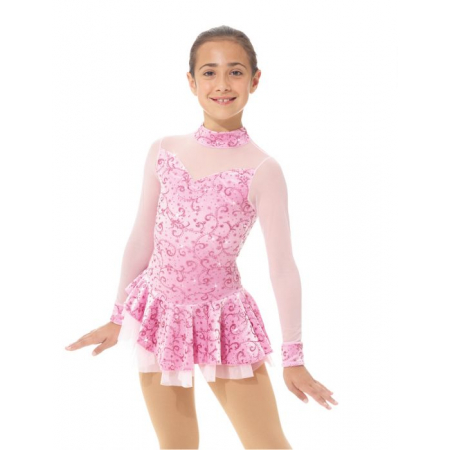Glitter velvet dress Mock neck with snaps Mesh sleeves and shoulders Skirt doubled with mesh Lined front Hair tie included Size : 6X-7.8-10