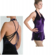 Sleeveless velvet dress with glitter motif. Halter top with straps detail at back, shelf bra. Hair tie included