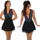 This slim empire inspired dress is cut in slimming slices of black V-shaped glitter velvet and styled with a flattering double georgette skirt.