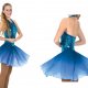 262 Dancing on Air Dress Sparkling sequin dress in a true halter style with a swirly dip-dyed georgette skirt that shades from dark at the waist to a lovely blue hue. Lined.