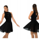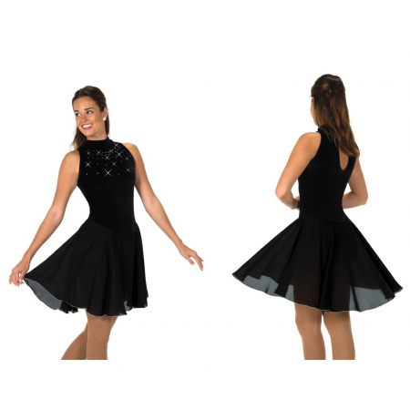 274 Crystal Dance Dress Black velvet dress with a high neck accented by sparkling crystals and a traditional back keyhole. Matching single layer dance length skirt edged in silver.